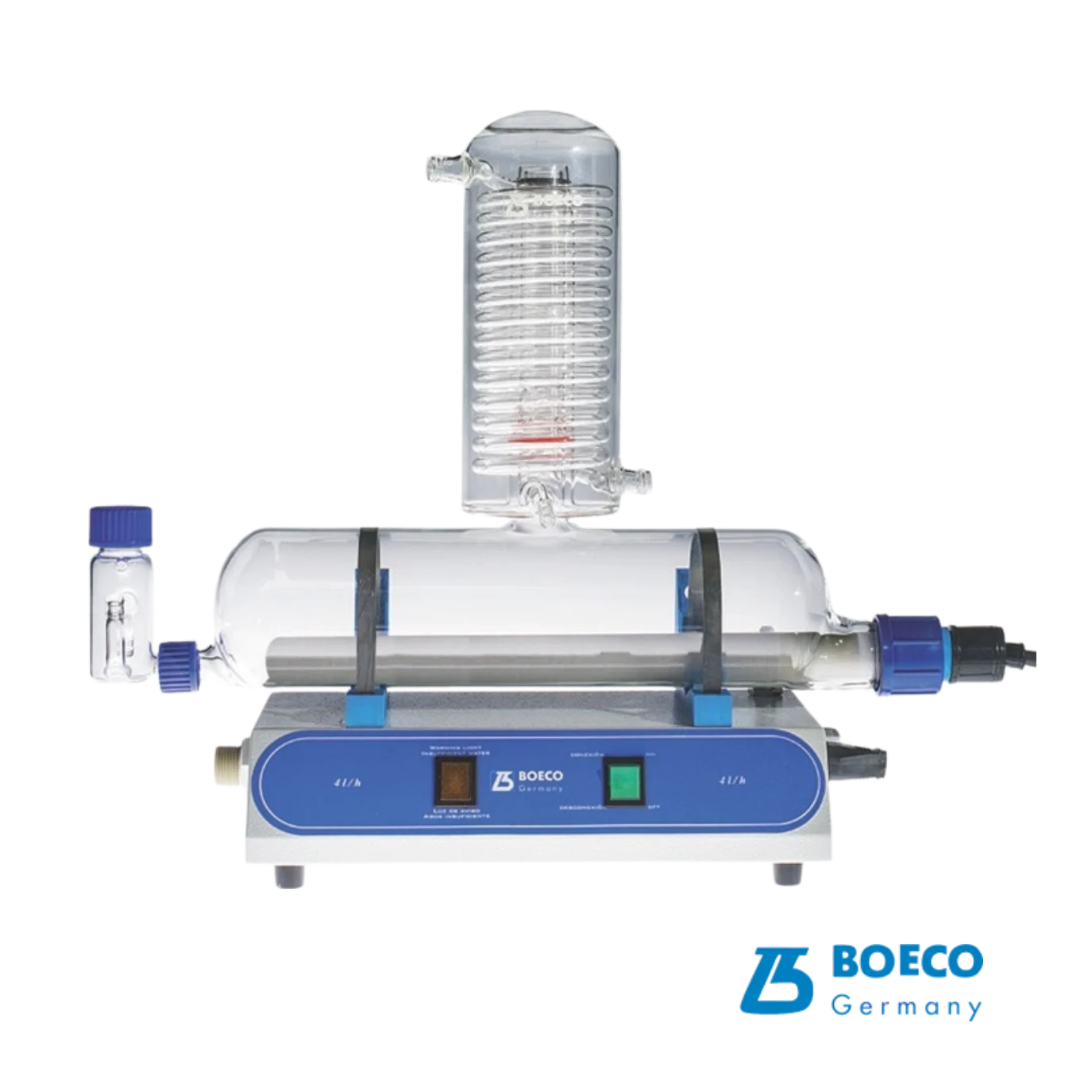 El destilador de agua de vidrio DEST-4 de Boeco está diseñado para producir agua de alta pureza de manera automática y continua, con una capacidad aproximada de 4 litros por hora. Su sistema garantiza resultados confiables y seguros, ideales para laboratorios que requieren agua libre de iones metálicos y sustancias pirógenas.