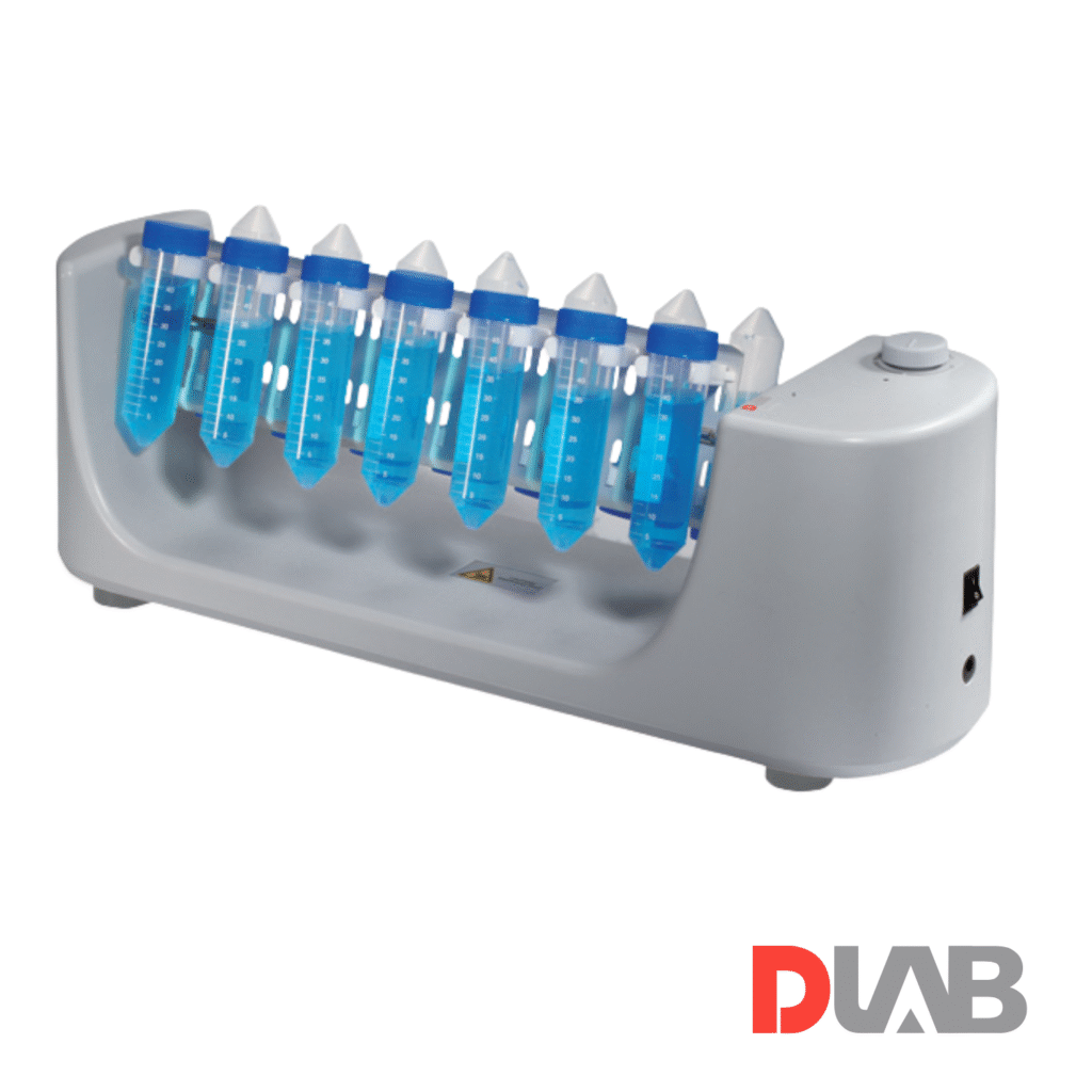 Con un rango de velocidad ajustable de 0 a 80 rpm y adaptadores incluidos, permite trabajar con 12 tubos de 1.5 mL, 12 tubos de 15 mL o 12 tubos de 50 mL, ofreciendo máxima flexibilidad en distintos ensayos.